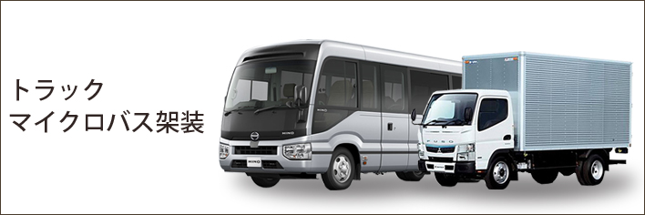 架装部門では、マイクロバス・トラック架装、マイクロバス・トラックアクセサリー売買と中古車売買を行なっております。